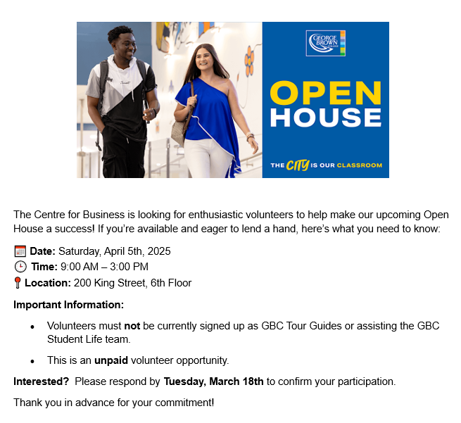 Volunteer Call out CfB Spring 2025 Open House Crew!